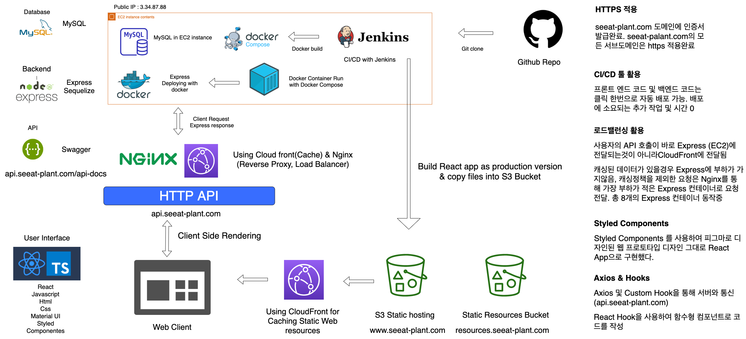 우리의 아키텍쳐와 기술스택은 아래 사진 첨부