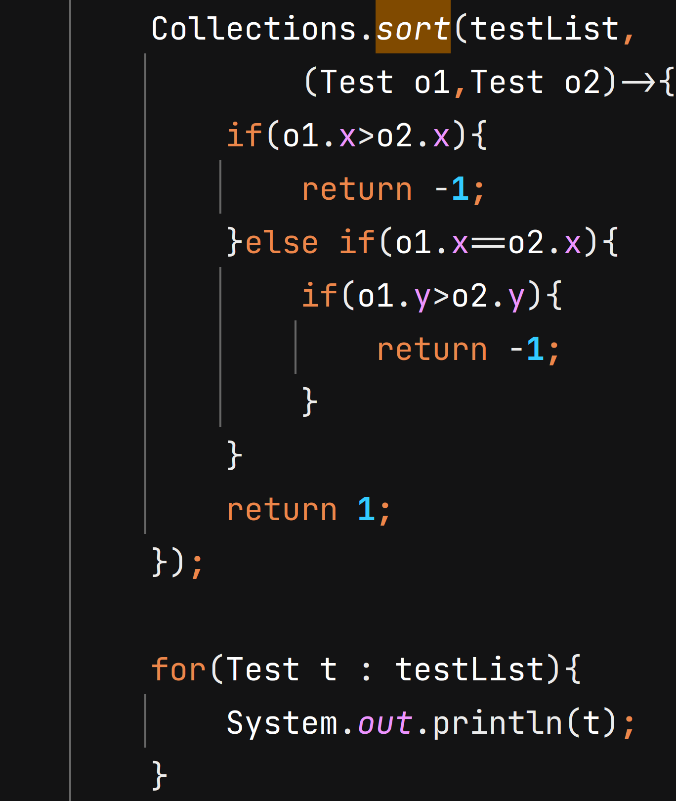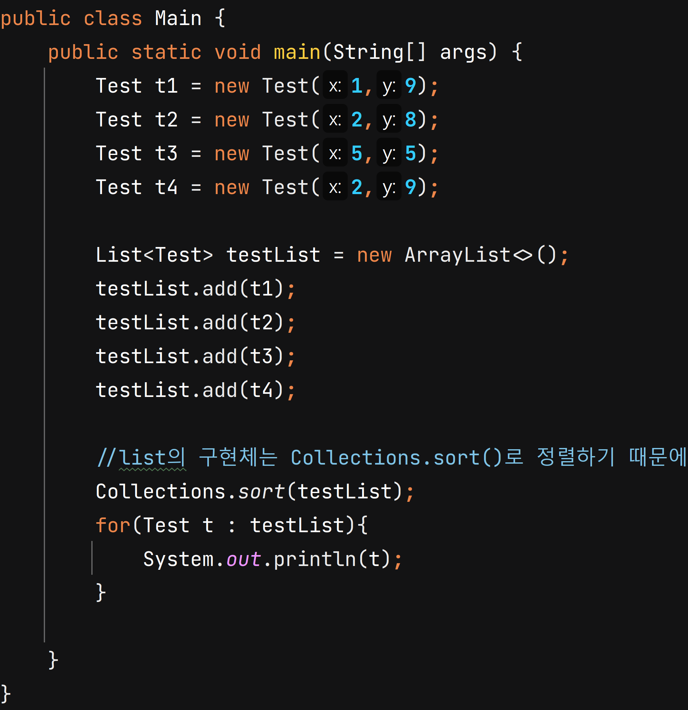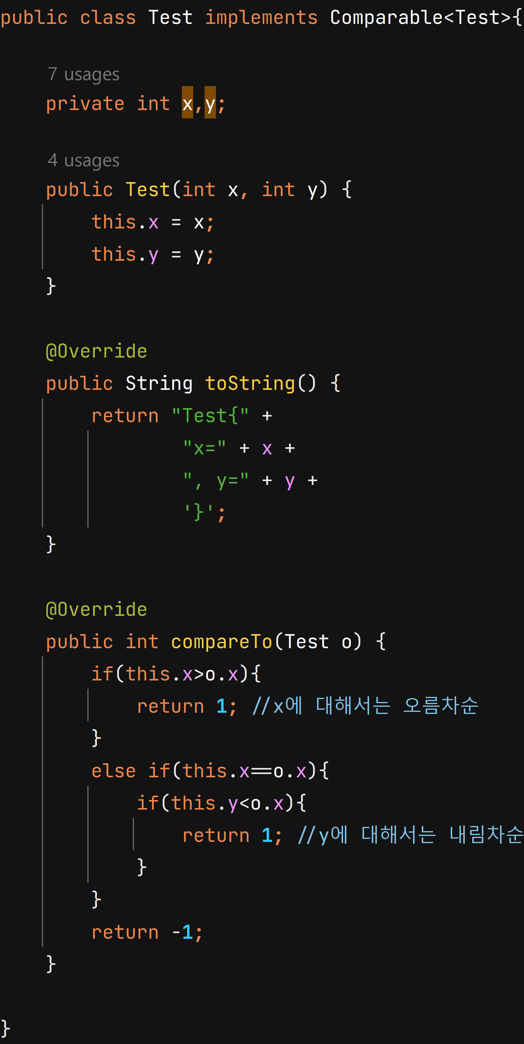 훨씬 간단하게 x기준 내림차순으로 정렬할 수 있고