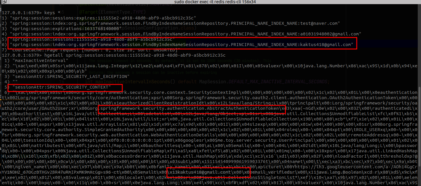 이제 Spring은 session을 Redis에 저장해주게 되는데요 저는 Spring Security를 사용하고 있기 때문에
