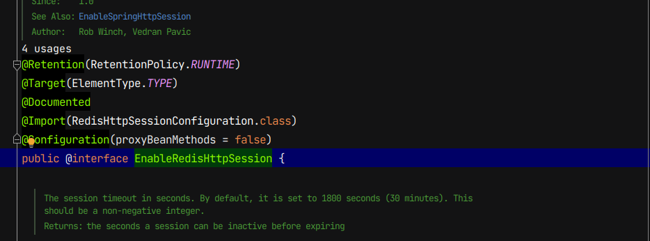 Redis 설정 파일을 만들고 @EnableRedisHttpSession을 사용해서 Redis에 세션을 저장하겠다고 알려주게됩니다.