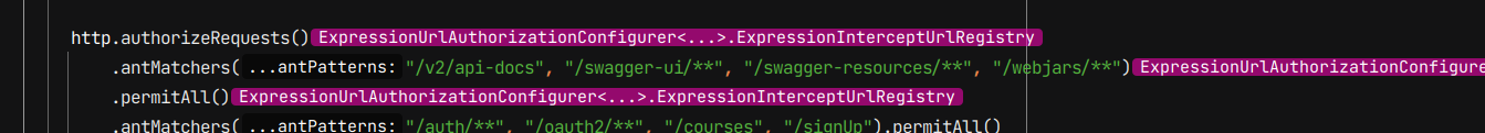 추가로 저는 Spring Security를 적용하고 있기 때문에 Swagger문서에 접근하기 위한 설정을 열어주겠습니다.