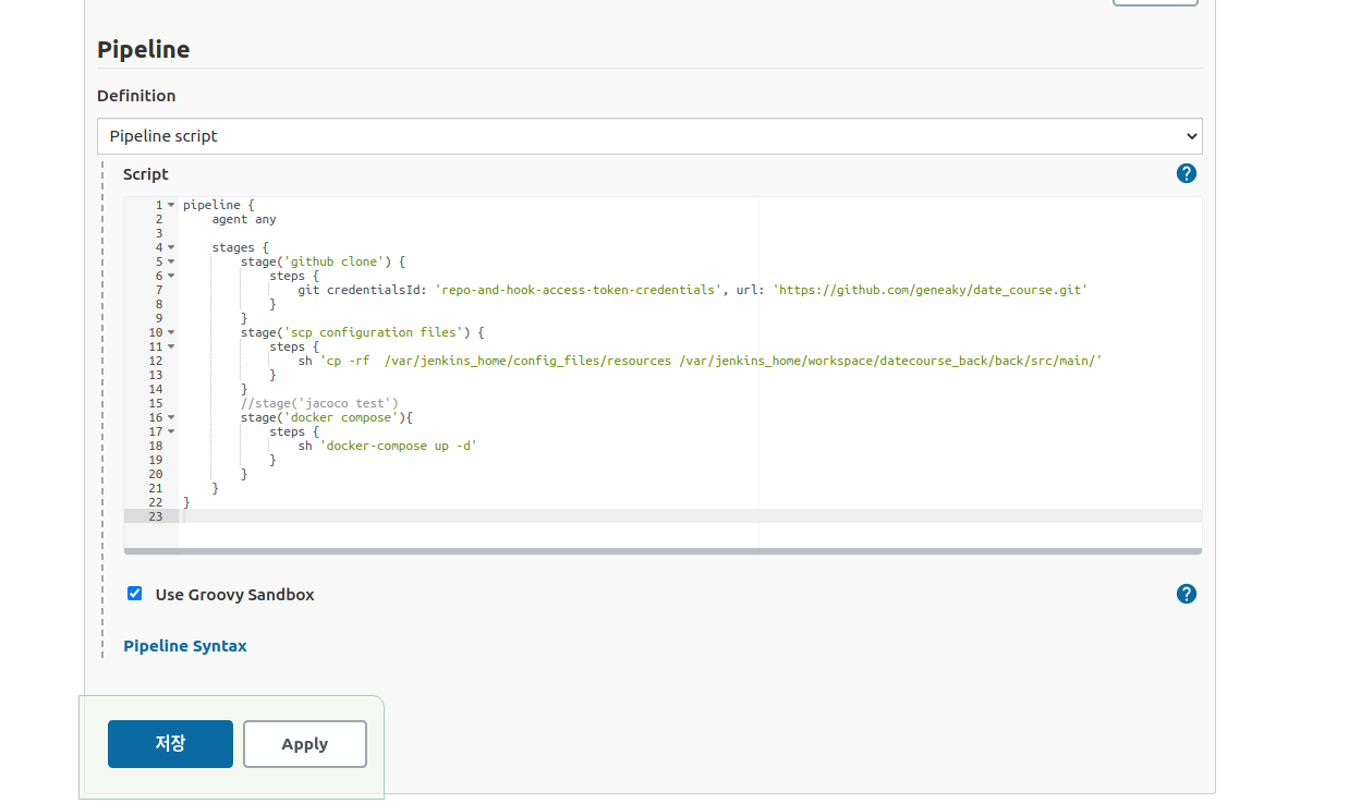 Pipeline 중간에 Jacoco같은 테스트를 끼워 넣을 수 있지만 저는 하지 않았습니다.