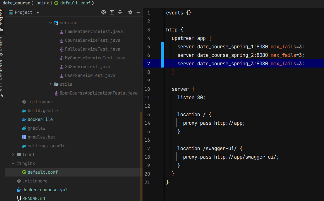 로드밸런싱 관련하여 max_fails=3로 주었는데요 이는 3번의 요청이 실패하면 해당 서버는 죽은 서버로 간주하게됩니다.