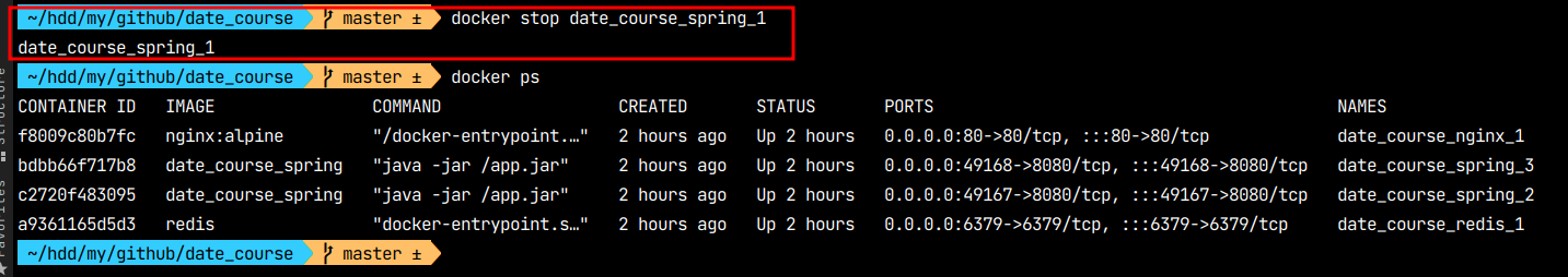 실제로는 EC2 서버가 한 대밖에 없어서 docker container 여러개를 띄우고 이것들을 로드 밸런싱한 내용으로 실제 회사에서 배포시 이런방식 말고 여러대의 EC2 서버를 구매해서 로드 밸런싱을 하겠지만 저는 제한된 자원으로 구현해보고자 이 방식으로 진행했습니다.
