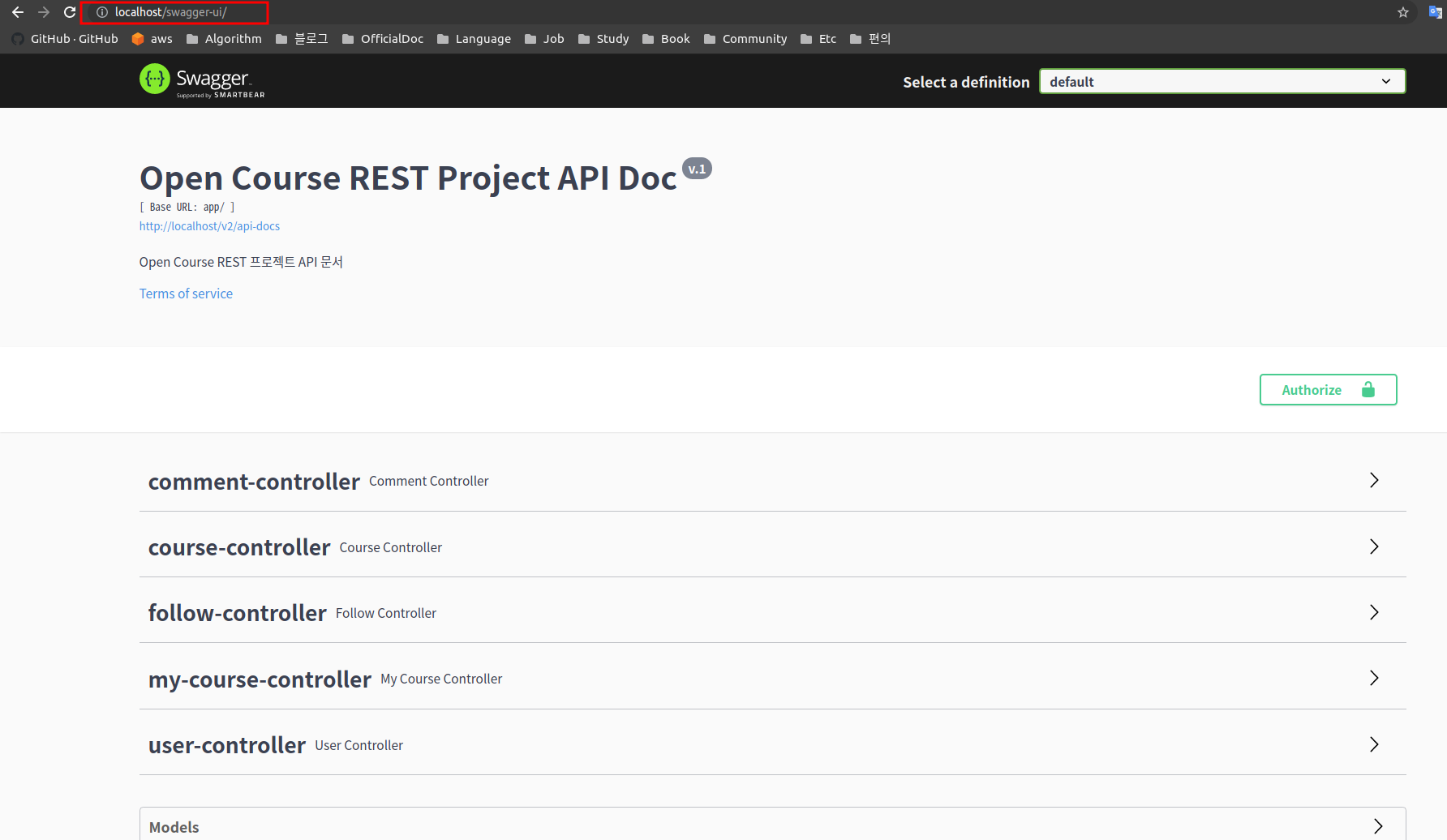 실험할 컨테이너들이 모두 올라왔고 nginx 컨테이너도 정상적으로 동작중이니 localhost/swagger-ui/로 접속해서 리버스 프록시 동작을 확인해 보겠습니다.